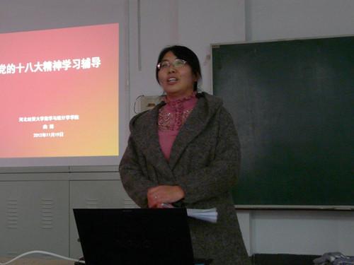 为了深入学习贯彻党的十八大精神,11月19日下午,数学与统计学学院在B301举办了2012级党的十八大精神学习辅导会,辅导会由辅导员曲博老师主持。