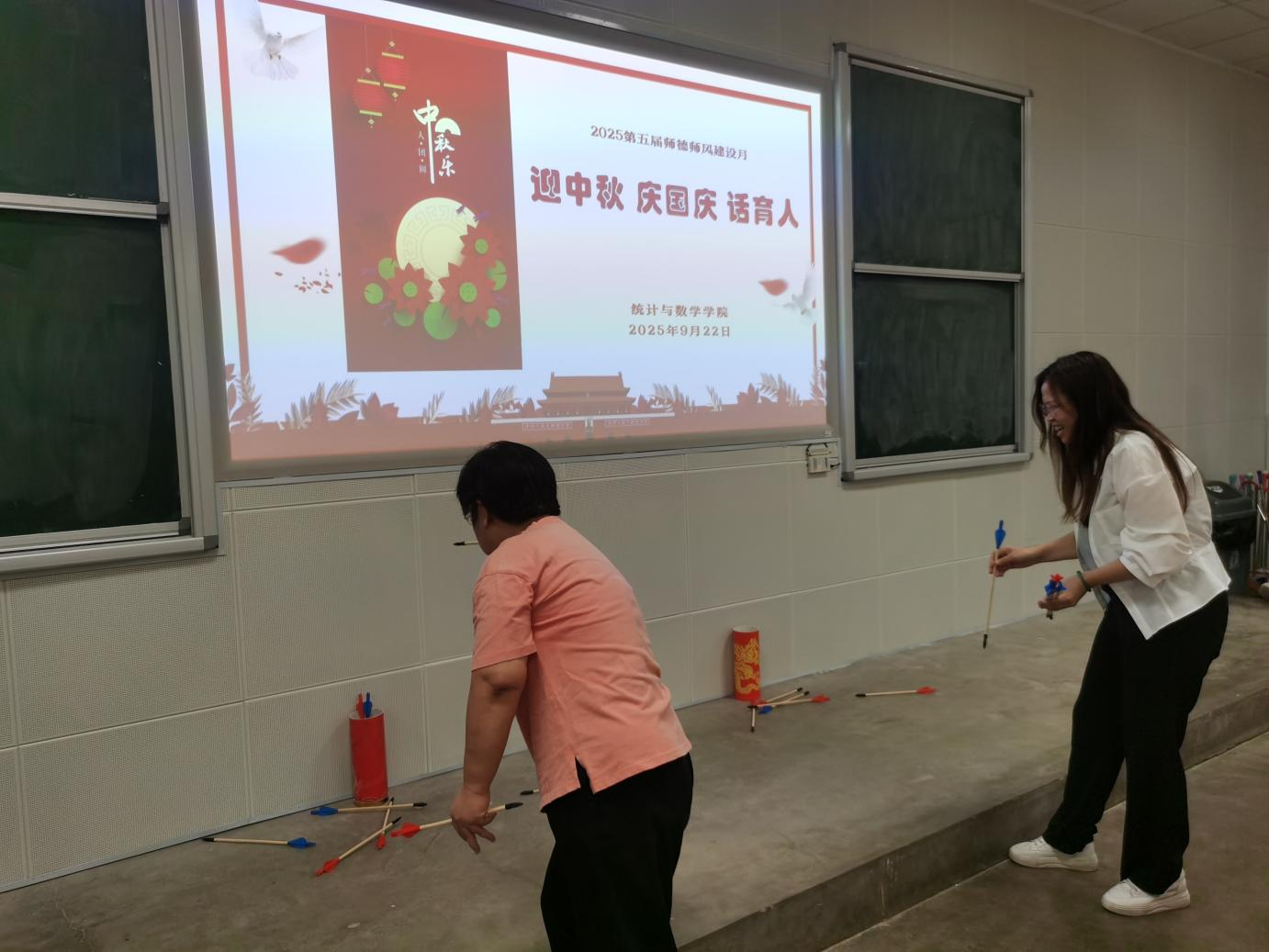 9月22日下午,ylzz总站线路检测中心全体教职工在二教106教室举办了“迎中秋 庆国庆 话育人”夹乒乓球、投壶等工会活动,这同时也是学院第五届师德师风建设月系列活动之一。